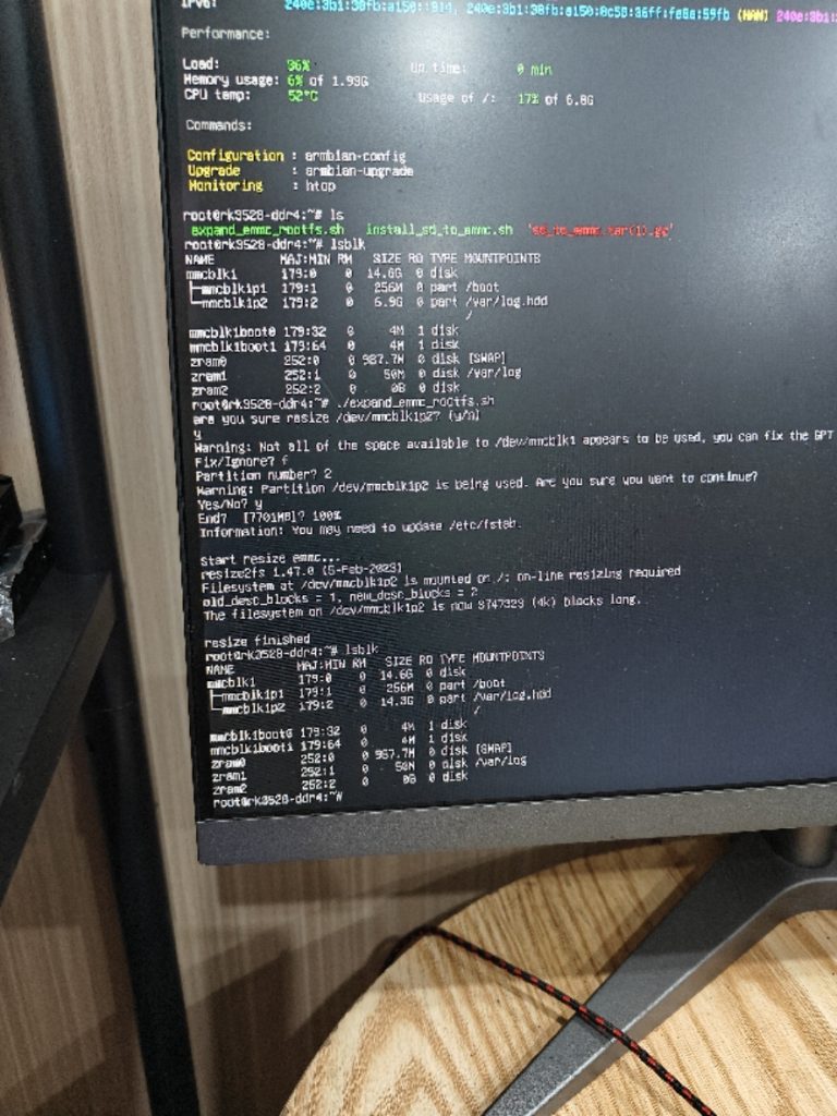 另外一个是扩容到盒子的最大内存,需要拔掉TF卡,等待系统成功运行后,在/home目录直接运行./expand_emmc_rootfs.sh