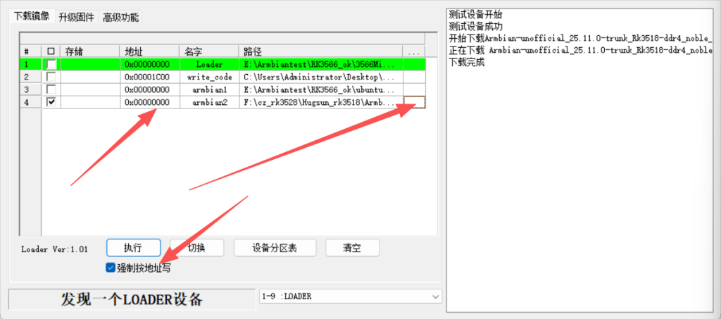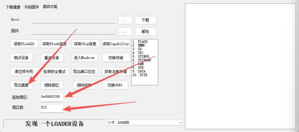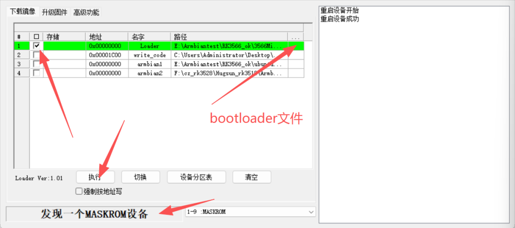 如果无法发现loader设备,极限的情况可以清空emmc,具体需要短路线路板的焊脚,具体询问客服,这种情况设备进入MaskRom模式,需要重新烧录Bootloarder,具体方法如下: