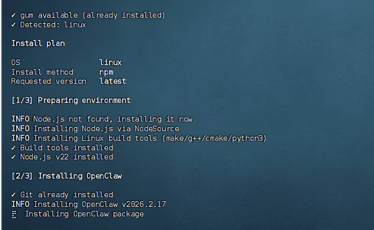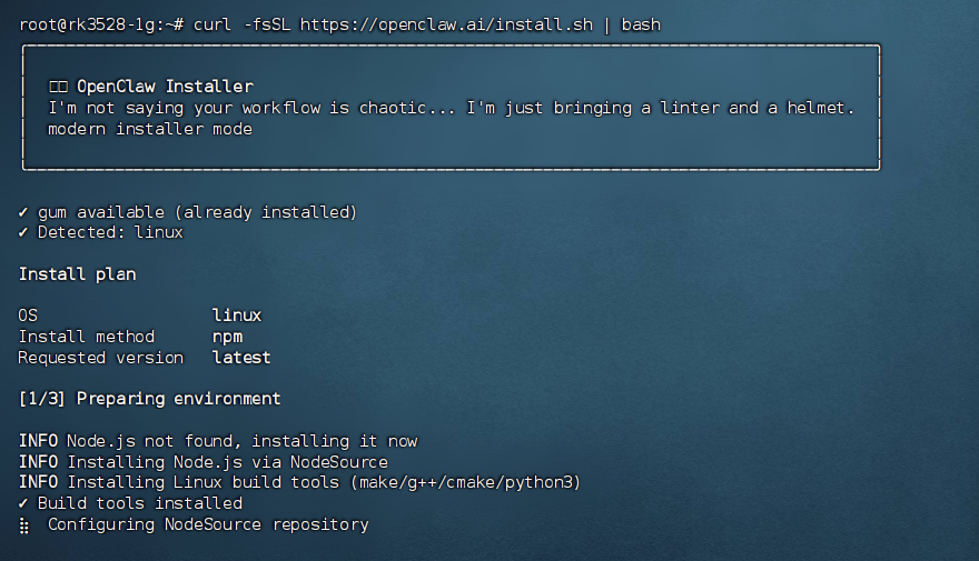 curl -fsSL https://openclaw.ai/install.sh | bash
